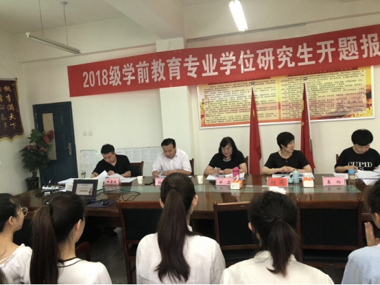 2019年7月17日—19日,我院2018级小学教育、学前教育专业学位研究生论文开题报告会在学院会议室举行。小学教育专业邀请西北师范大学教育学院院长、博士生导师刘旭东教授担任组长,学前教育专业邀请西北师范大学郑名教授担任组长,天水市解一小学校长赵鹏飞、麦积区建新路幼儿园园长赵英及两个专业研究生导师担任开题组成员,我院2018级小学教育和学前教育两个专业共55名研究生分两组进行开题。