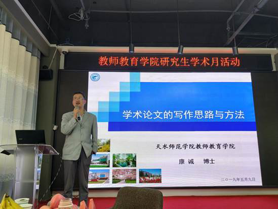 为进一步繁荣我院研究生学术文化,弘扬科学精神,优化育人环境,激发研究生的学术研究意识和创新活力,全面提高研究生培养质量,经学院研究决定,于2019年5月9日至6月6日举办第一届(2019年)“研究生学术文化月”活动。首场报告于5月9日下午16:30在科技园二楼多功能厅举行。结合目前研究生学位论文选题和撰写中容易出现的问题,吴原博士和康诚博士分别做了题为“问题意识与教育研究”和“学位论文撰写的思路与方法”的报告,教师教育学院所有研究生导师及小学教育和学前教育专业全体研究生聆听了本场报告。