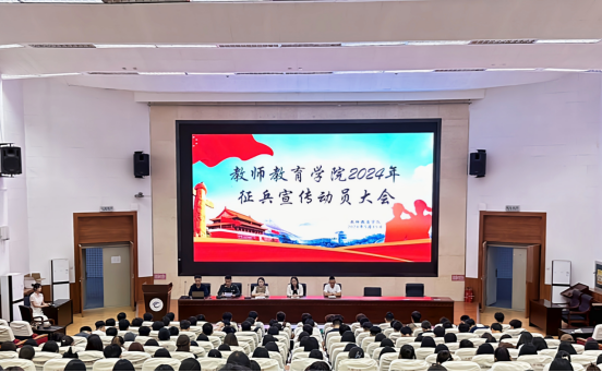 为深入贯彻落实习近平总书记新时代强军思想,传达有关征兵工作精神和部署要求,鼓励同学们响应国家号召,履行公民义务,积极从军、报效祖国。5月15日晚,教师教育学院在二号报告厅举行了“弘扬爱国精神,勇担时代使命”征兵工作宣传动员大会,全院300多名学生参加。