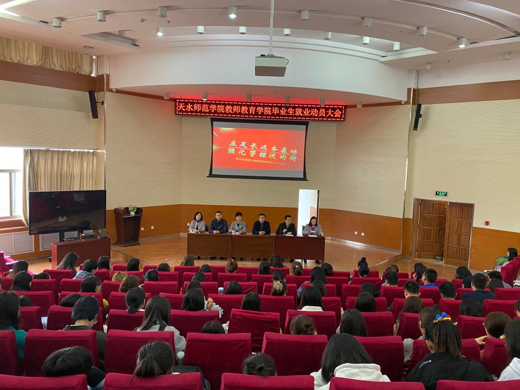 3月12日,教师教育学院在3号报告厅举办2021届毕业生就业动员大会。轮台县教科局麻洲田主任、邓劲松主任、轮台县一中副校长吕新丽、轮台县三中副校长李献忠、学而思教育集团部门负责人李倩倩、教师教育学院院长杨学良以及2021届全体毕业生参加动员会。