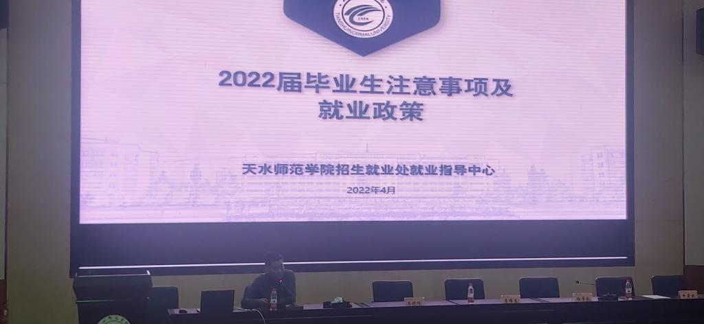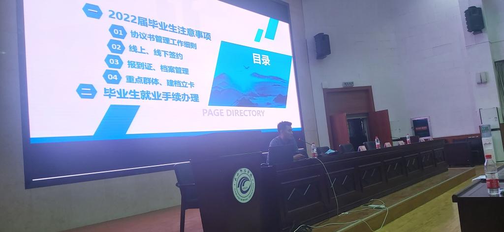 2022年5月21日晚,教师教育学院在学校2号报告厅举办了2022届毕业生就业动员大会,教师教育学院院长杨学良、招生就业处副处长潘骥、学院负责就业工作的辅导员韩亚伟以及2022届毕业生参加了此次动员大会。